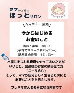 ティータイムがあります。子育て先輩ママの経験談もぜひ聞いて下さいね♪